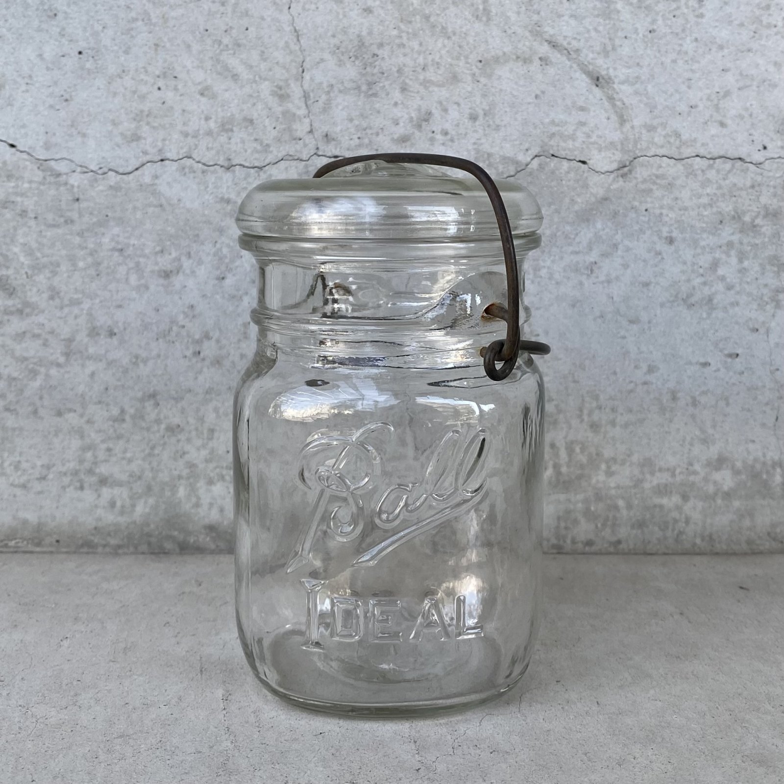 VINTAGE ANTIQUE BALL IDEAL JAR ヴィンテージ アンティーク ボール ジャー ガラス瓶 アメリカ / ワイヤー付き クリアー ディスプレイ ボトル 小物入れ 収納 店舗什器 D