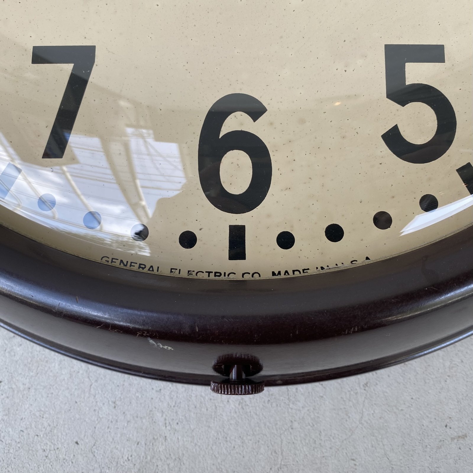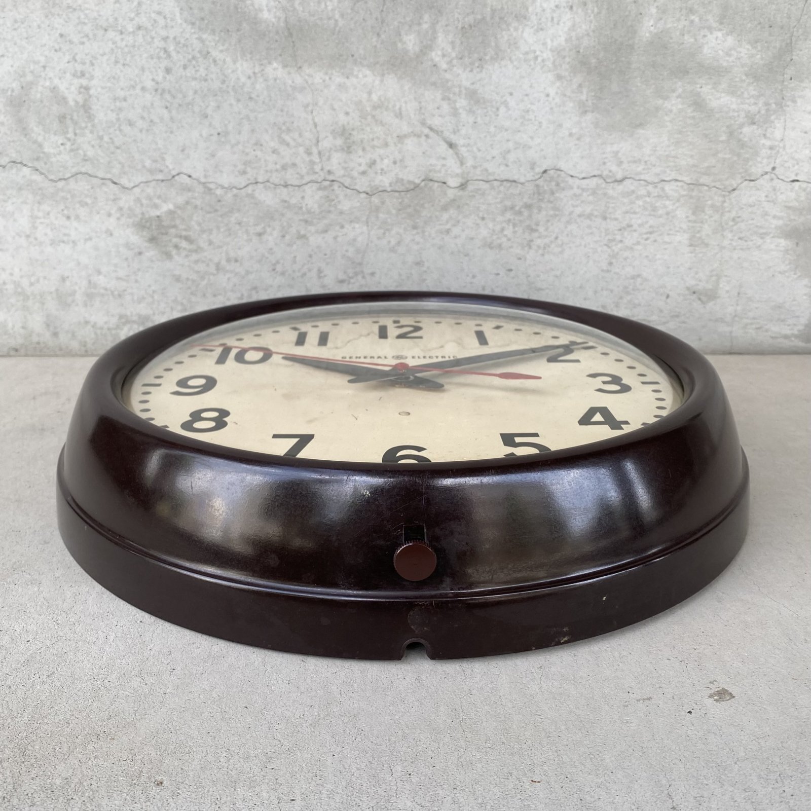 VINTAGE ANTIQUE GENERAL ELECTRIC WALL CLOCK GE ヴィンテージ アンティーク ウォールクロック ゼネラルエレクトリック 壁掛け時計 / スクールクロック ベークライト 焦げ茶 丸型 店舗什器 アメリカ (3)