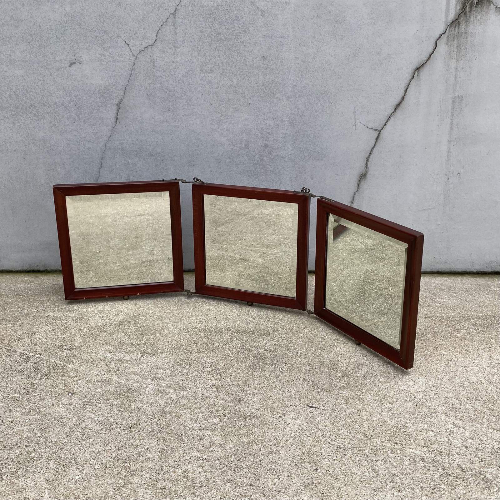 VINTAGE ANTIQUE WALL MIRROR ヴィンテージ アンティーク 鏡 ミラー 壁掛けミラー ウォールミラー 三面鏡 / ウッド 木製 折り畳み トラベルミラー 店舗什器 アメリカ