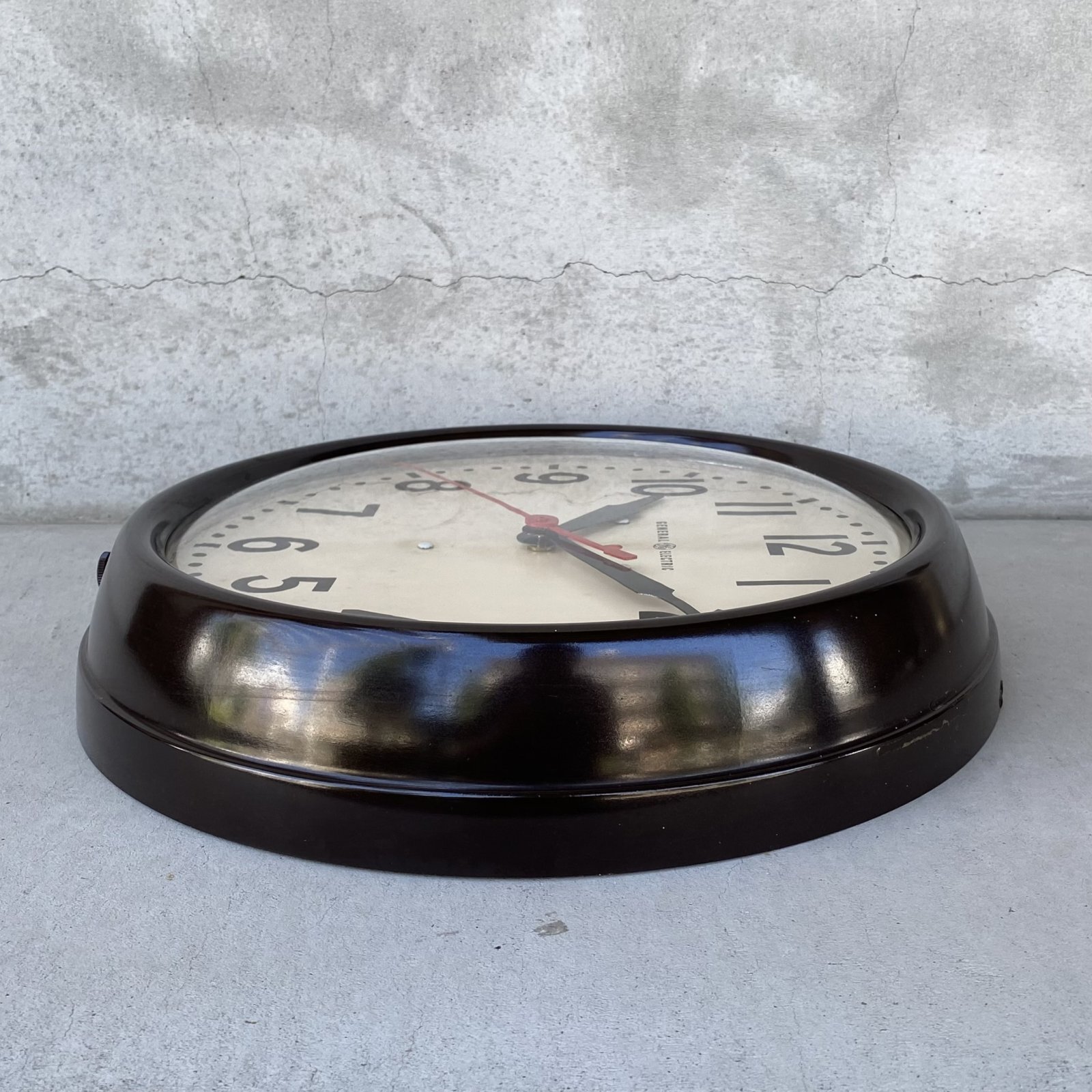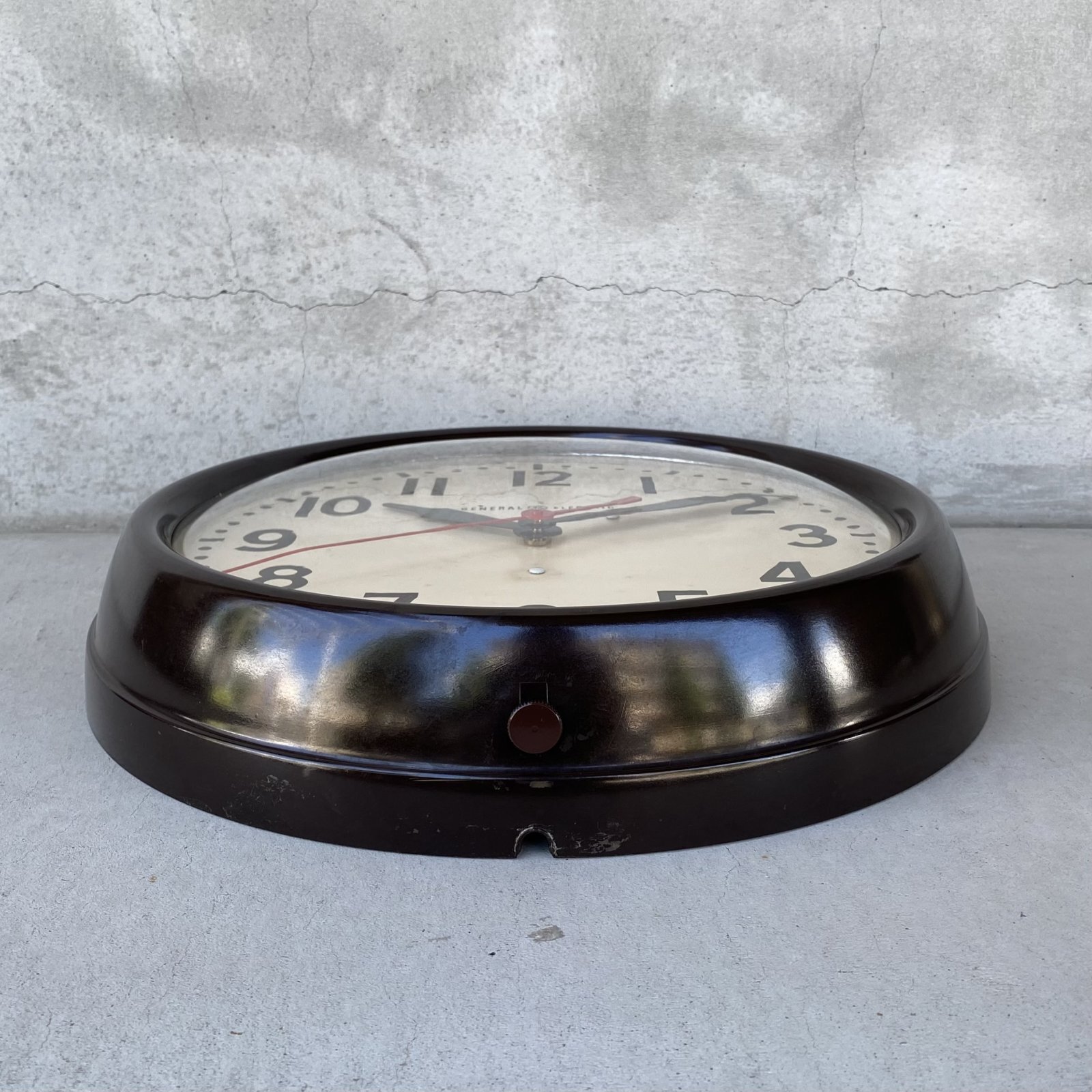 VINTAGE ANTIQUE GENERAL ELECTRIC WALL CLOCK GE ヴィンテージ アンティーク ウォールクロック ゼネラルエレクトリック 壁掛け時計 / スクールクロック ベークライト 焦げ茶 丸型 店舗什器 アメリカ (4)