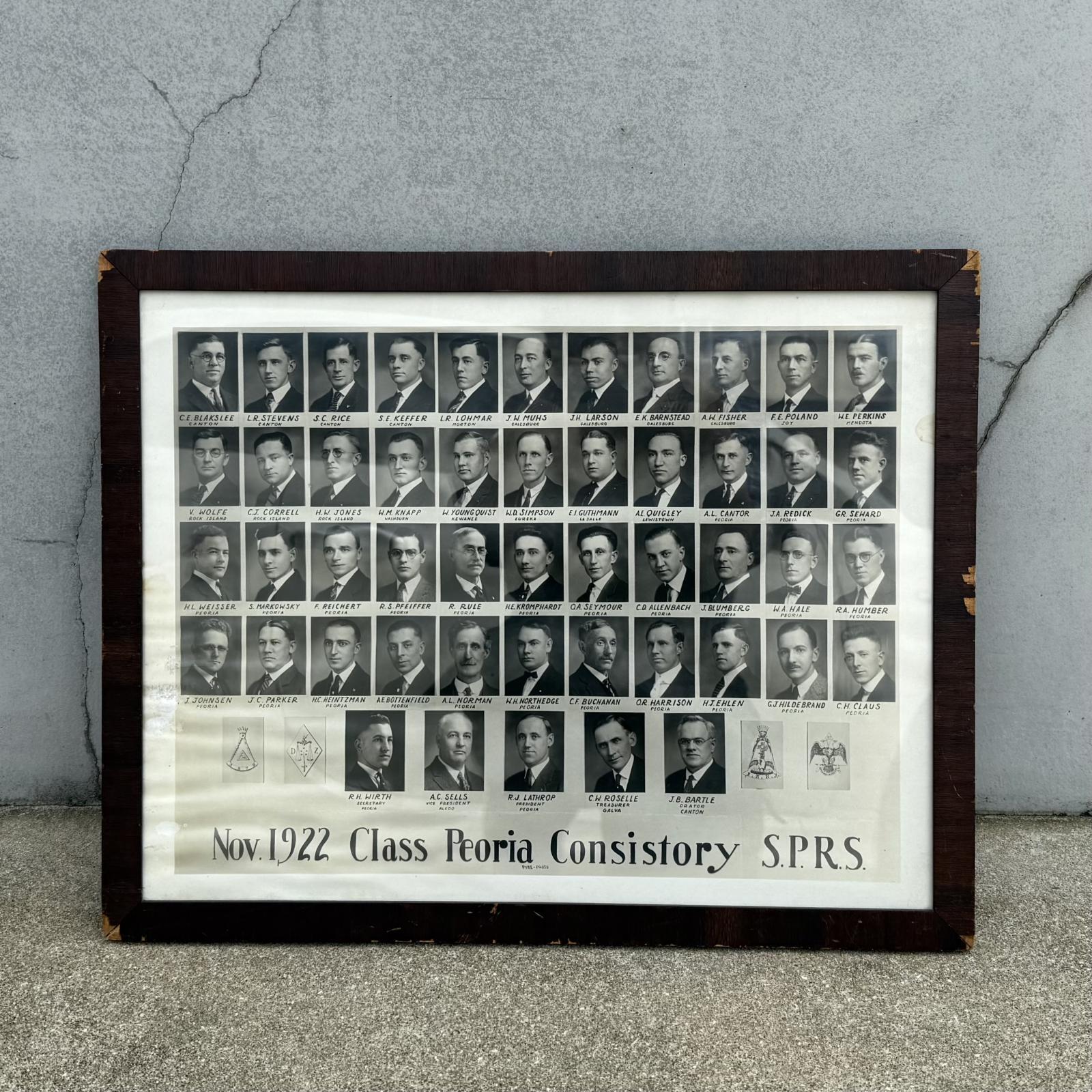 VINTAGE ANTIQUE 1922 CLASS PRORIA CONSISTORY S.P.R.S ヴィンテージ アンティーク フリーメイソン 集合写真 / ウォールインテリア コレクタブル フレーム 壁掛け 額装 木製 20'S アメリカ