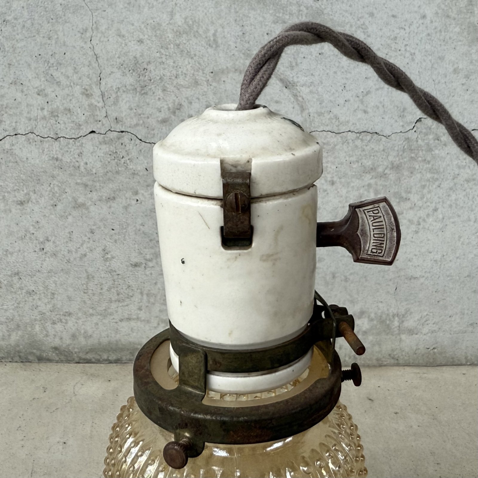 VINTAGE ANTIQUE LAMP ヴィンテージ アンティーク 吊り下げライト 天井照明 / ライト ペンダントライト ポーセリン ガラスシェード E26 店舗什器 アメリカ (3)