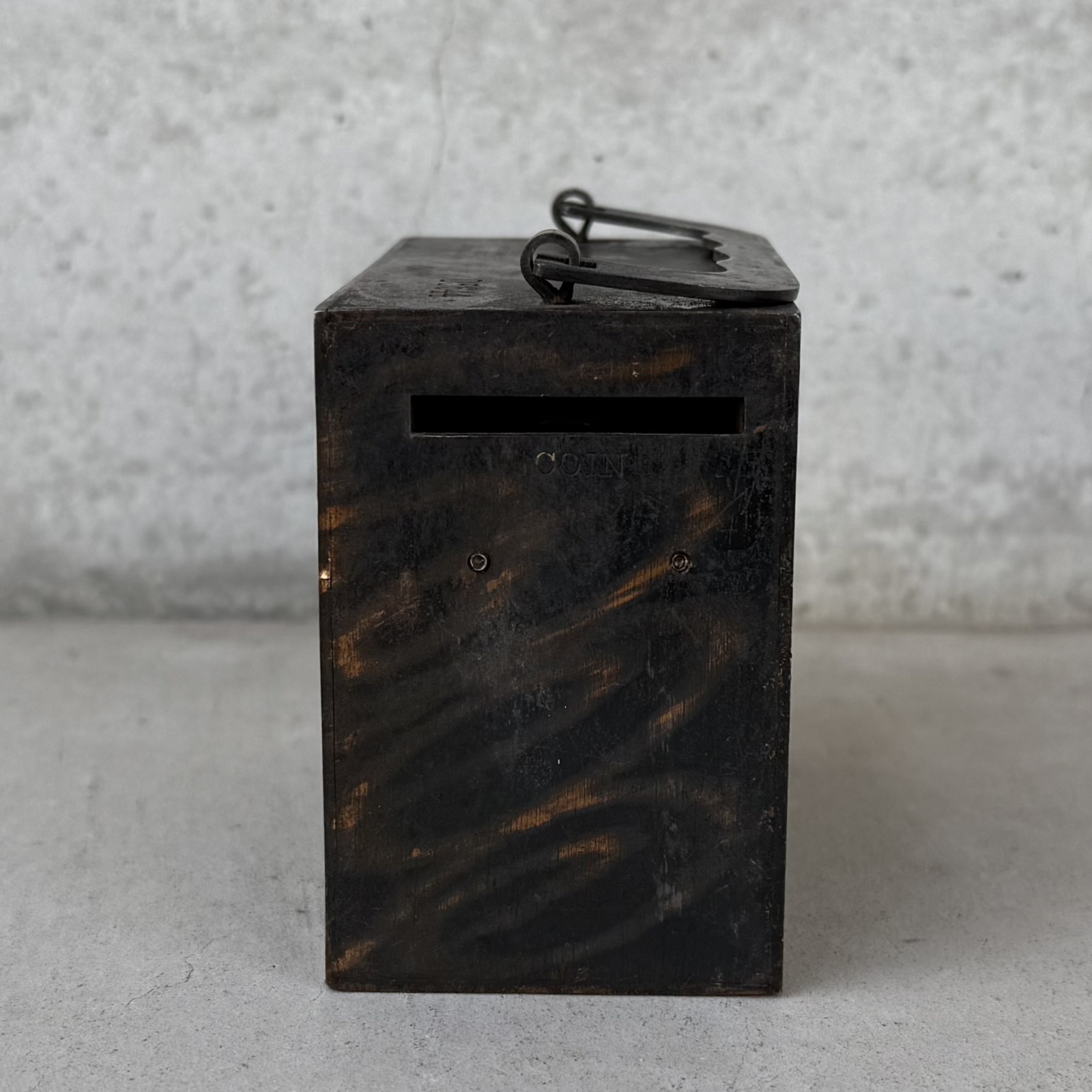 VINTAGE ANTIQUE COIN BANK W.F.BURNS CO. JAPANNED ヴィンテージ アンティーク コインバンク マネーバンク 貯金箱 ジャパンド ジャパンフィニッシュ / コレクタブル オブジェ インテリア ノベルティー 銀行 アメリカ USA (3)