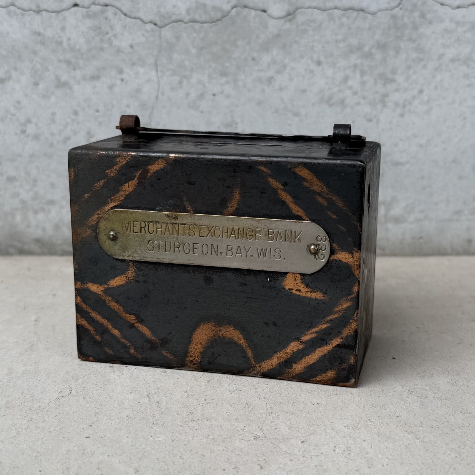 VINTAGE ANTIQUE COIN BANK JAPANNED LOUIS RICH CO. ヴィンテージ アンティーク コインバンク マネーバンク 貯金箱 ジャパンド ジャパンフィニッシュ / コレクタブル オブジェ インテリア ノベルティー 銀行 アメリカ USA (2)