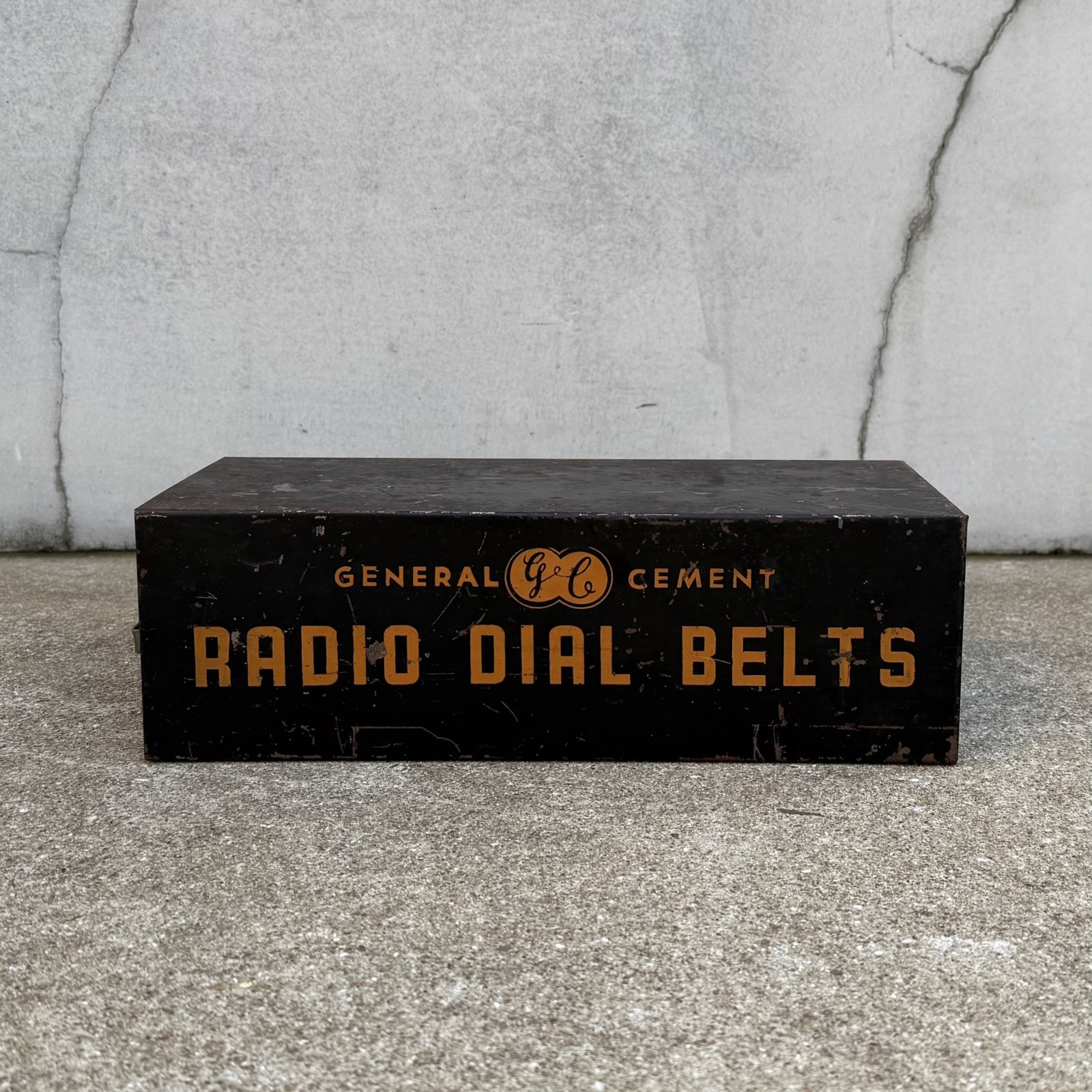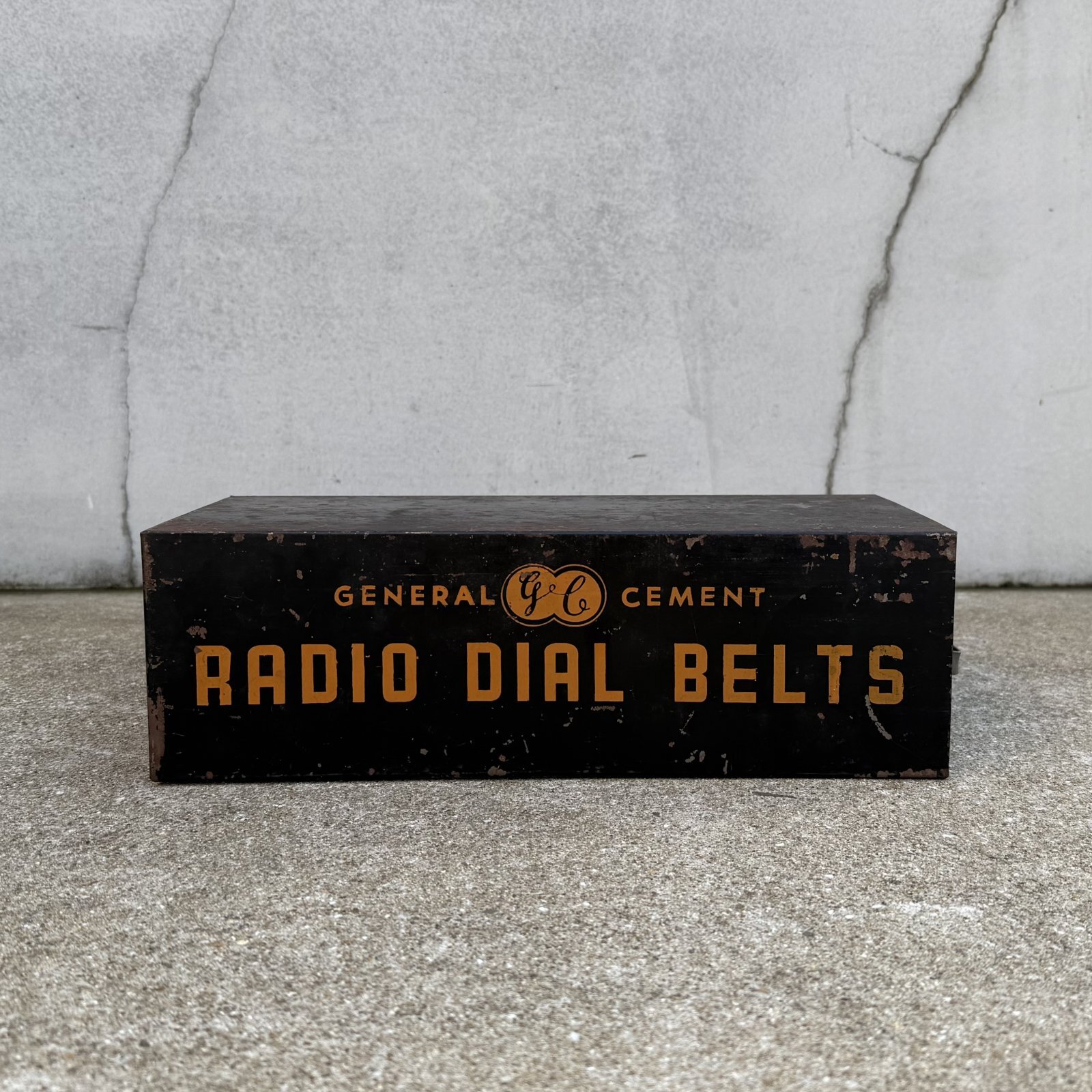 VINTAGE ANTIQUE GENERAL CEMENT BOX RADIO DIAL BELTS GC ヴィンテージ アンティーク ボックス ケース / インダストリアル アドバタイジング ラジオ アイアン ガレージ 企業物 箱 収納 鉄 店舗什器 アメリカ USA (1)