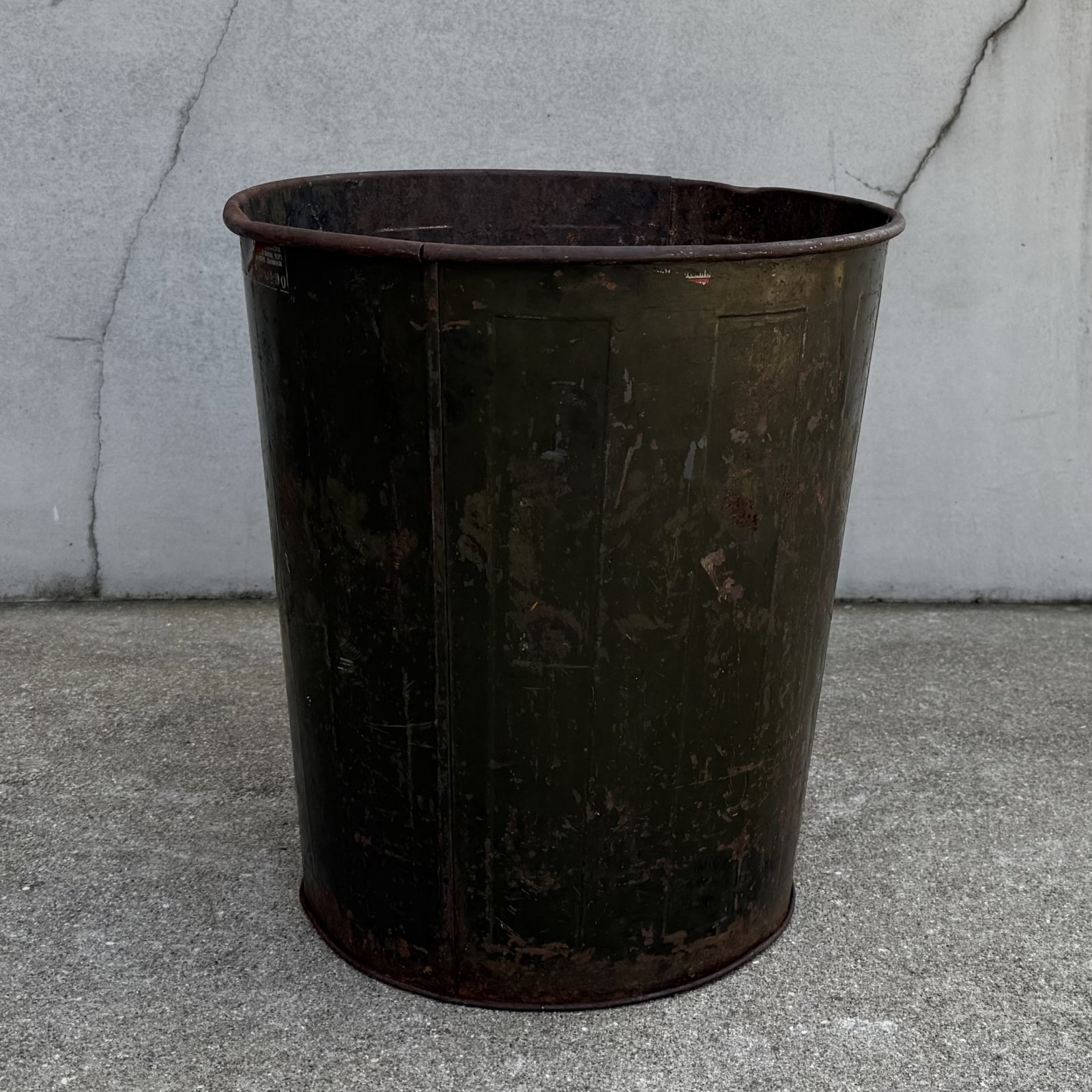 VINTAGE ANTIQUE TRASH CAN BUCKET ヴィンテージ アンティーク ゴミ箱 ダストボックス バケツ / 缶 インダストリアル 収納 カーキ 店舗什器 アメリカ (2)