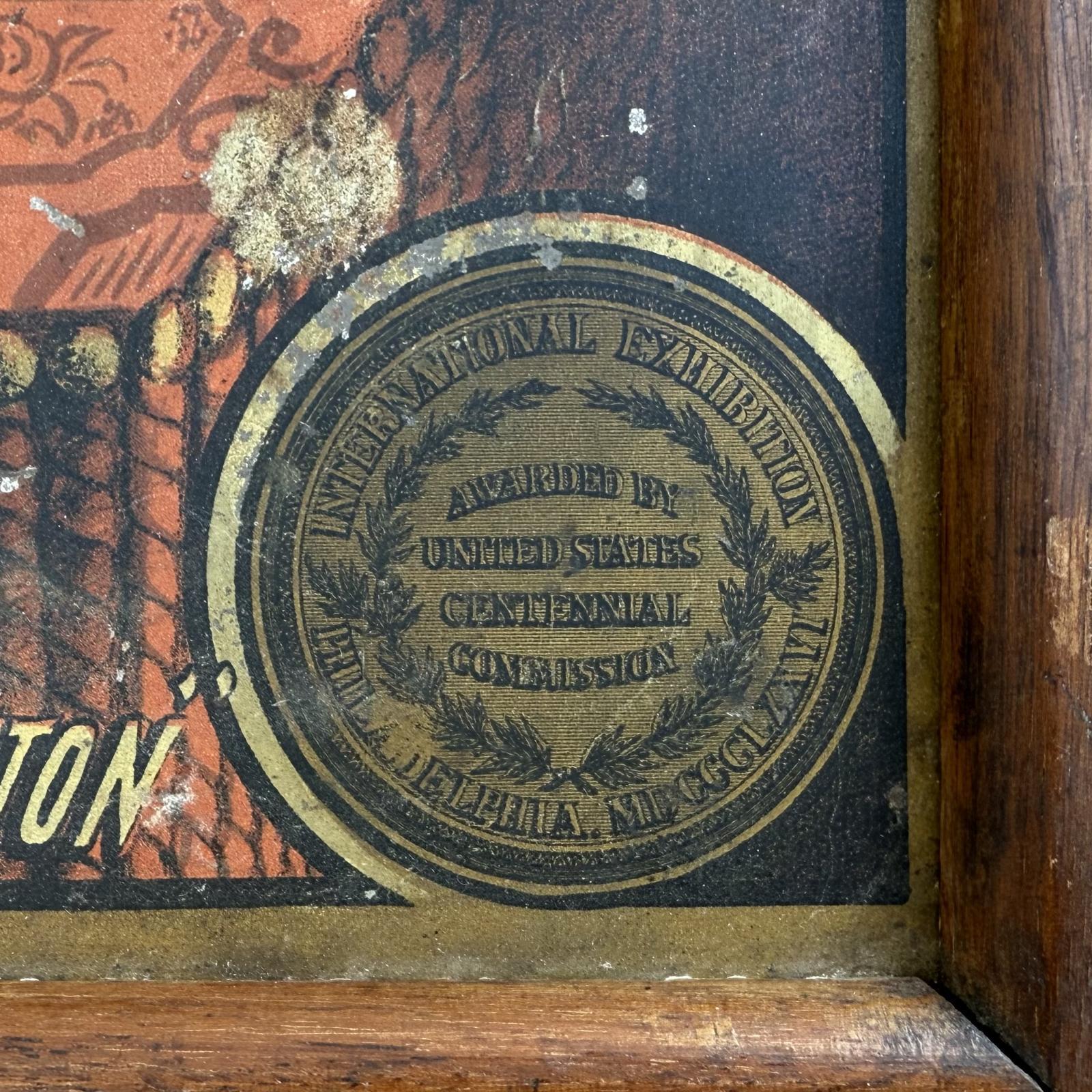 ミシン糸の広告が描かれた木製のテーブルです。