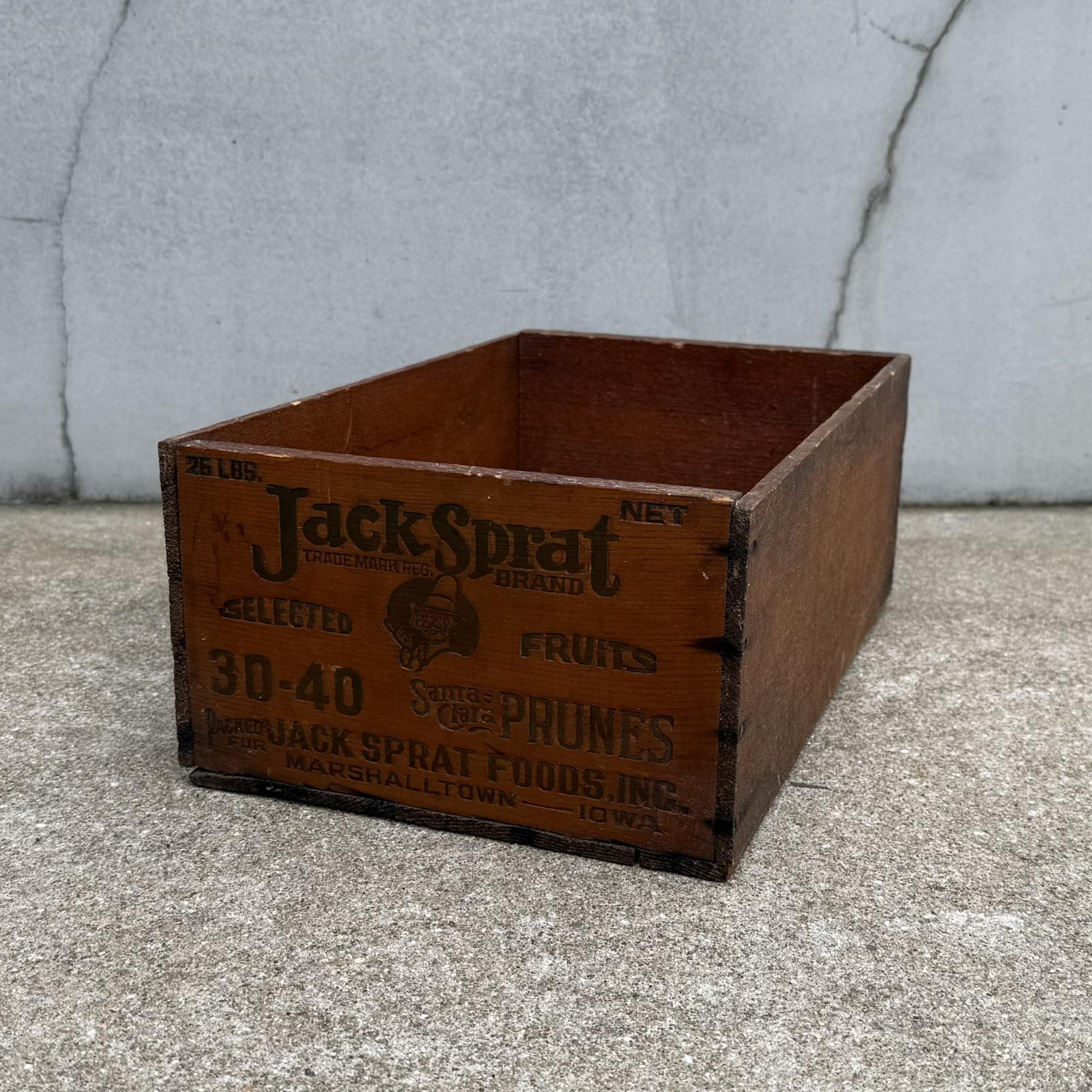 VINTAGE ANTIQUE WOOD CRATE WOODEN BOX JACK SPRAT ヴィンテージ アンティーク ウッドボックス 木箱 / コレクタブル 収納 ケース アドバタイジング 店舗什器 アメリカ