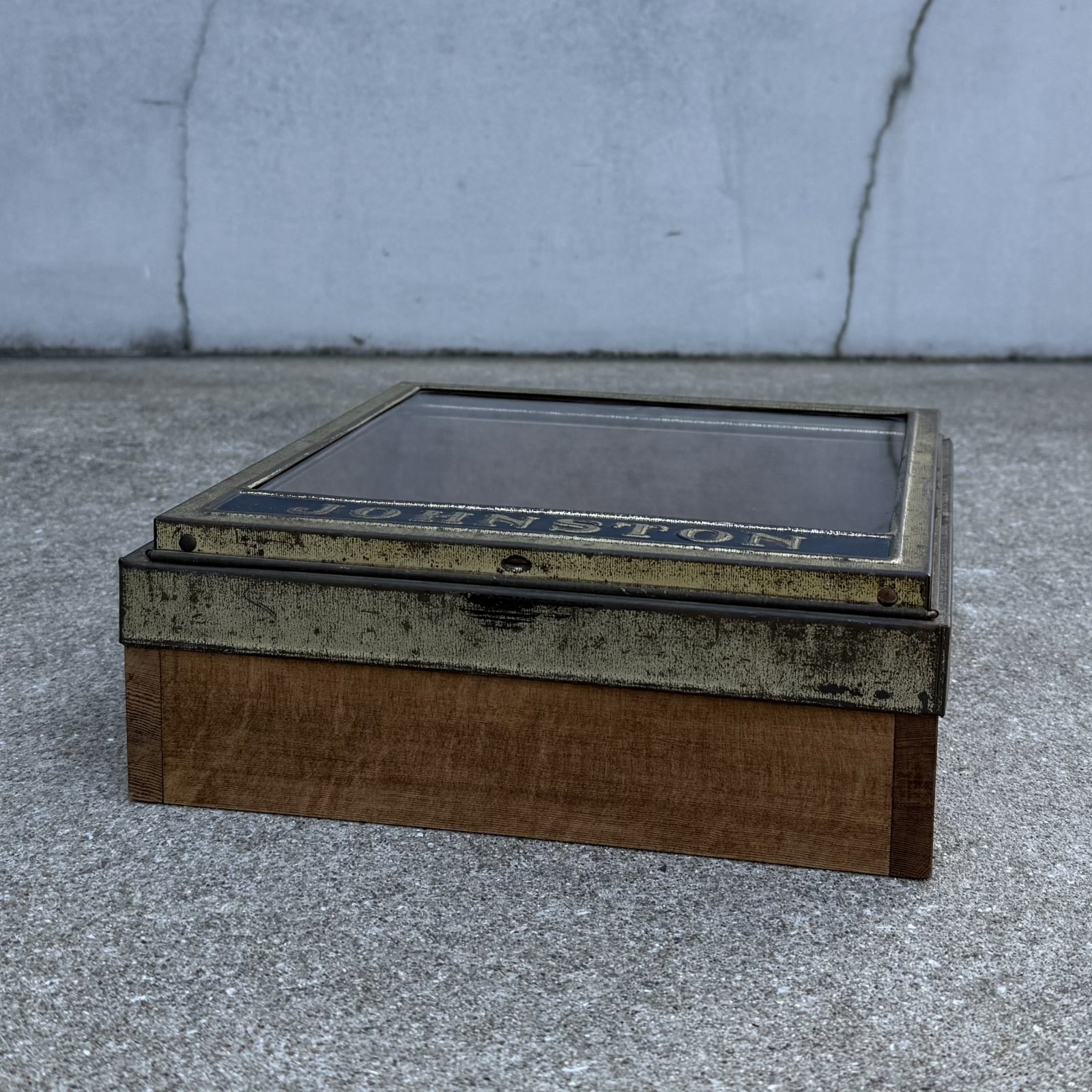 VINTAGE ANTIQUE JOHNSTON BISCUIT SHOWCASE ヴィンテージ アンティーク ショーケース ビスケット / ディスプレイ ケース 箱 陳列 小物入れ 店舗什器 アメリカ