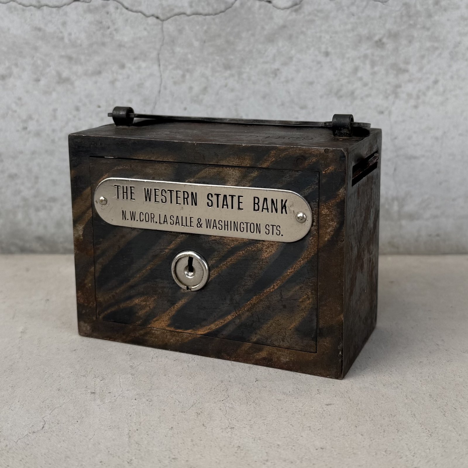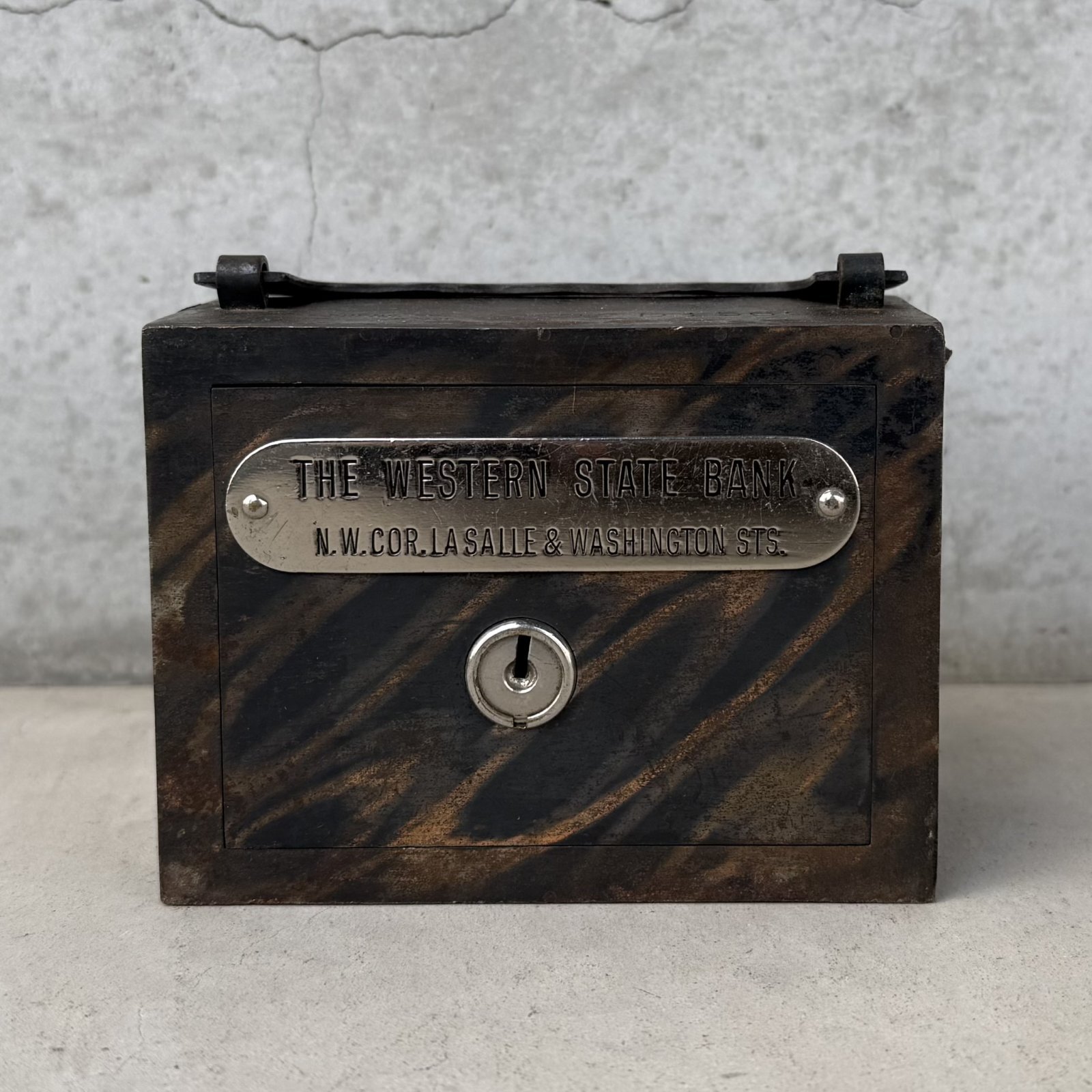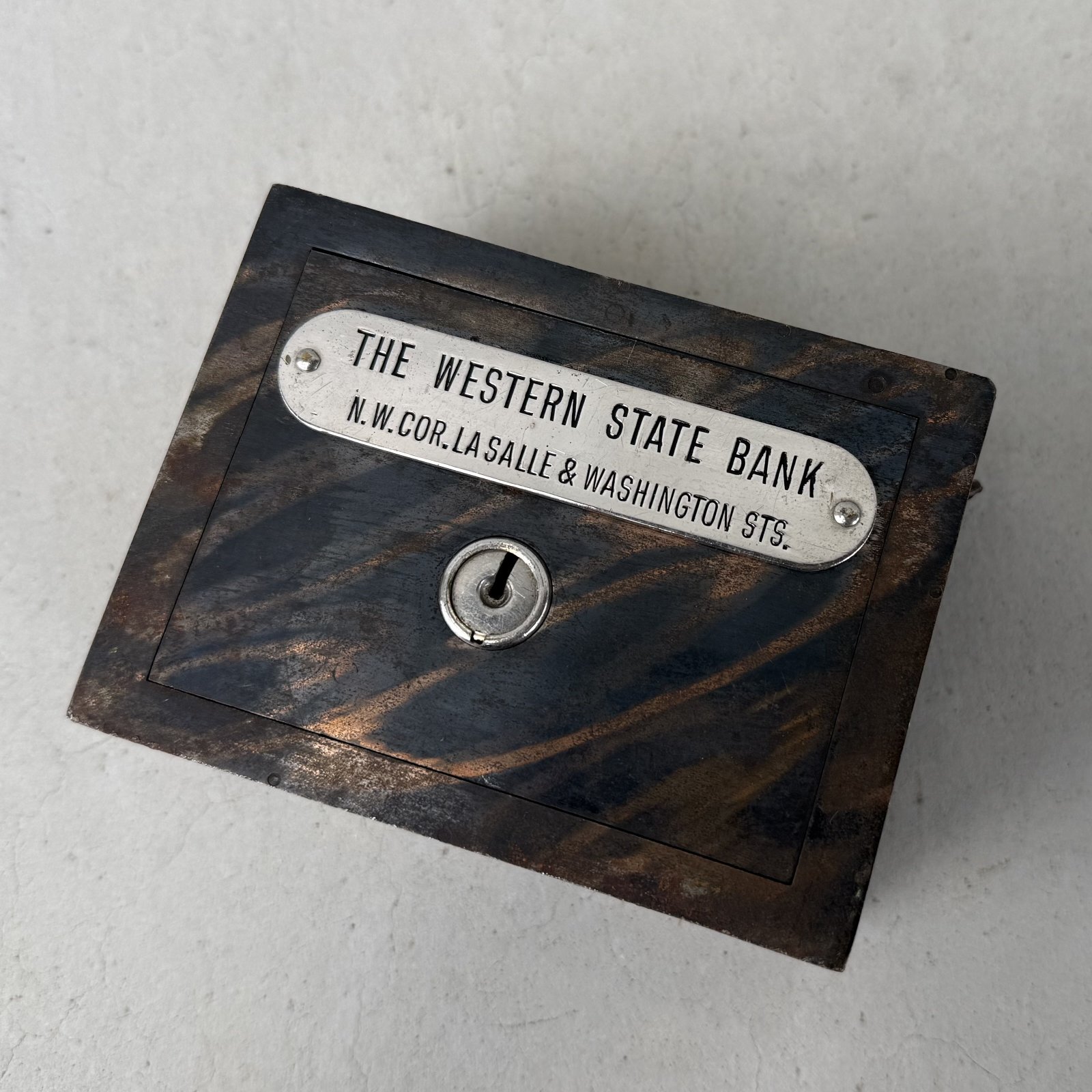 VINTAGE ANTIQUE COIN BANK JAPANNED W.F.BURNS CO. ヴィンテージ アンティーク コインバンク マネーバンク 貯金箱 ジャパンド ジャパンフィニッシュ / コレクタブル オブジェ インテリア ノベルティー 銀行 アメリカ USA (7)