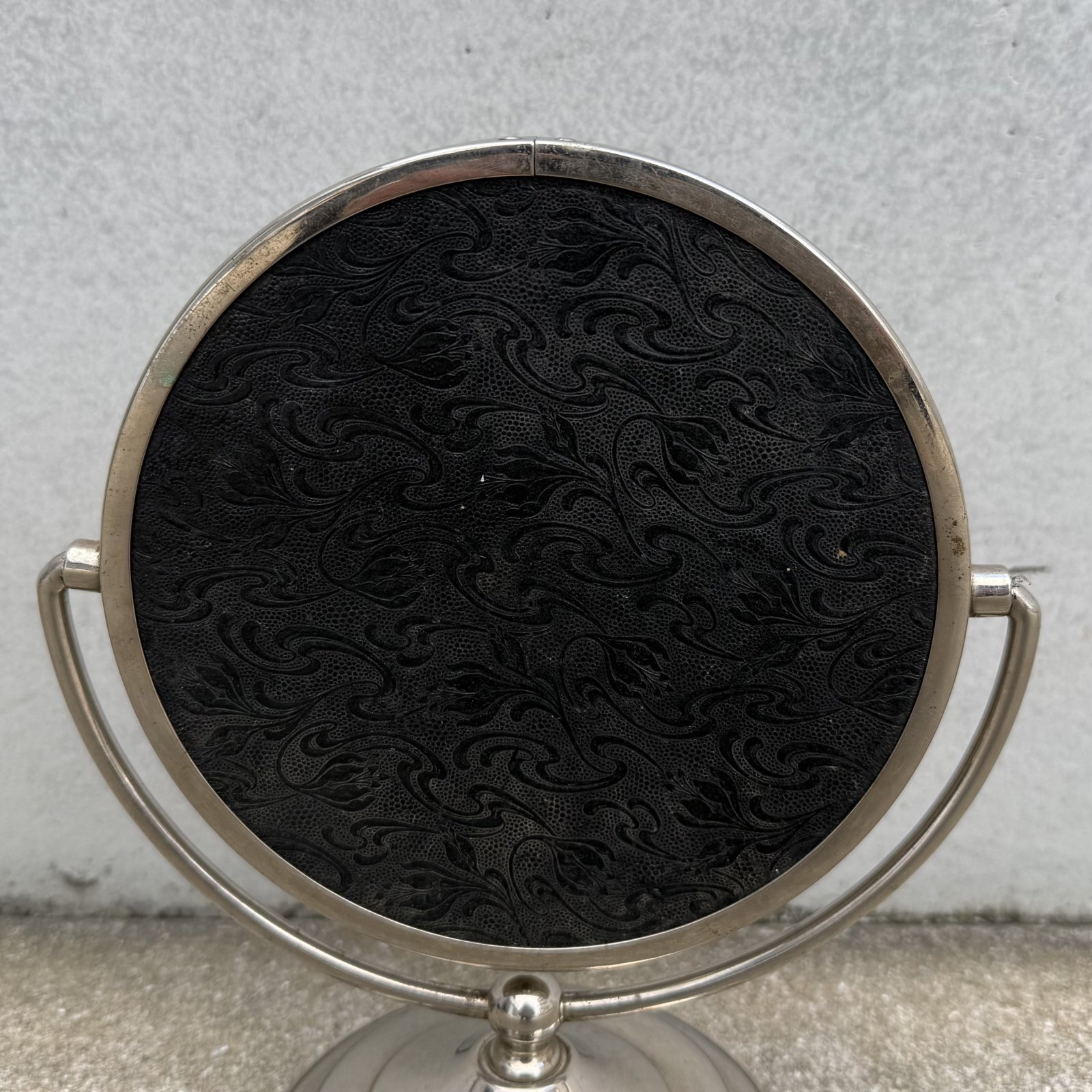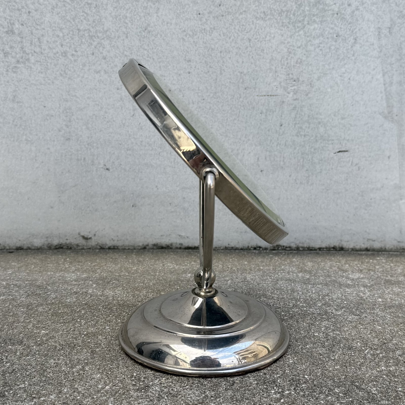 VINTAGE ANTIQUE STAND MIRROR NICKEL ヴィンテージ アンティーク スタンドミラー 鏡 / 卓上ミラー シェービングミラー ニッケル ラウンド インテリア 化粧 店舗什器 アメリカ USA (6)