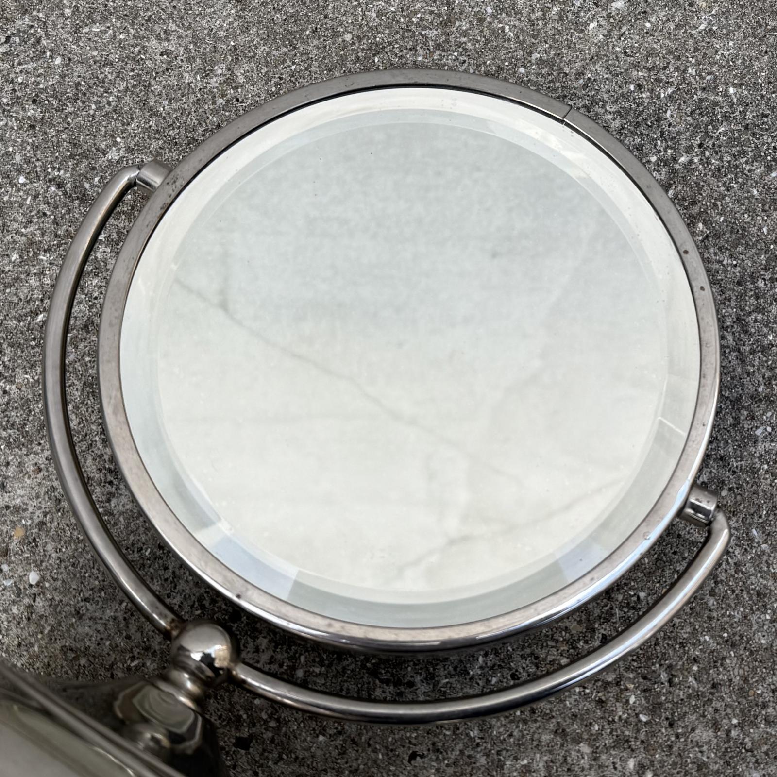 VINTAGE ANTIQUE STAND MIRROR NICKEL ヴィンテージ アンティーク スタンドミラー 鏡 / 卓上ミラー シェービングミラー ニッケル ラウンド インテリア 化粧 店舗什器 アメリカ USA (6)
